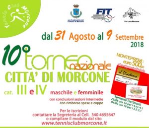 Il torneo è riservato agli atleti di IV e III categoria sia maschile che femminile. L’evento organizzato dal locale Circolo Tennis, presieduto da Girolamo Iacobelli , è autorizzato dalla Federazione Italiana Tennis con il patrocinio del Comune di Morcone.