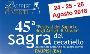 Procedono senza sosta i preparativi per la 45esima edizione del ‘Festival dei Sapori-Sagra del Cecatiello e degli Artisti di Strada’ che vede in sinergia la Pro Loco e il Comune di Paupisi con il patrocinio della Regione Campania, dell’Università del Sannio e dell’I.I.C.Q. Regionale. Un ultimo weekend di agosto che vedrà Paupisi imbandierato a festa con circa 4mila bottiglie di plastica, tante bandiere, luci e ben 600 ombrelli. In queste ultime ore la organizzazione del Festival sta chiudendo anche i diversi spettacoli musicali che allieteranno le tre serate paupisane. Serate durante le quali ci sarà anche la seconda edizione del festival degli artisti di strada, provenienti da tutta Italia, che lo scorso anno ha avuto un successo straordinario. Ed ecco i vari colpi già chiusi per l’edizione 2018: sul palco principale in piazza De Marco venerdì 24 agosto ci sarà il concerto dei ‘Bottari della Cantica Popolare di Macerata Campania’, sabato 25 agosto invece gran concerto de ‘I Briganti di Terra d’Otranto’ e dalle ore 23.30 ci si scatenerà con ‘I Fortyssimi’ di Radio Company. Domenica 26 agosto è in programma musica napoletana macchiettistica con la Serino Band. La organizzazione del Festival dei Sapori ha pensato bene di dislocare altri spettacoli musicali in diverse postazioni del paese. Infatti lungo il percorso gastronomico ci si potrà imbattere sulla street music band con la banda del Bukò, poi spettacoli di fuoco, i trampolieri, statue viventi dell’associazione dei Saltimbanchi, non mancheranno gli spettacoli di bolle di sapone, poi giocoleria, clowneria, equilibrismo, teatrino per bambini, trapezismo, fachiro, momenti di magia, musica popolare e napoletana con le associazioni Soul Palco e Dea eventi. E non può mancare musica per balli liscio & latino americani e poi spettacoli di musica contemporanea. La novità dell’edizione di quest’anno è senza dubbio il palio delle contrade, in programma domenica 26 agosto con corteo storico e ‘combattimento’ degli arcieri provenienti da tutta la regione. Dunque il 24.25.26 agosto saranno tre giornate di ottima cucina e di grandi spettacoli musicali: ci sono tutti gli ingredienti per un Festival dei sapori di livello altissimo.