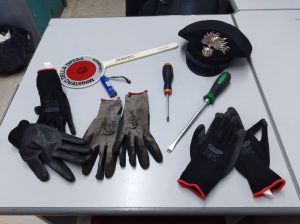 Il materiale veniva debitamente sequestrato ed i tre giovani venivano deferiti in stato di libertà alla competente A.G. per il reato di  possesso ingiustificato di arnesi atti allo scasso.