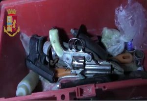 All’interno della rimessa sono stati infatti rinvenuti: due pistole clandestine, di cui una modificata, le relative munizioni, 6 pani di hashish da circa 100 grammi ciascuno, una moto ed un’autovettura rubati.