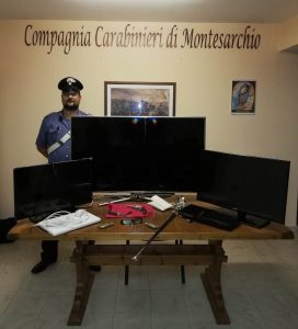 Nel dettaglio, a seguito di un furto in abitazione perpetrato in San Martino Valle Caudina (AV) nella precedente serata dove venivano asportati tre televisori, una sciabola, un pc portatile e altro materiale, i militari, congiuntamente, sviluppavano una mirata attività investigativa che li conduceva a localizzare la dimora dove era custodita la refurtiva. Pertanto si decideva, senza indugio, di procedere ad effettuare perquisizione domiciliare presso l’abitazione del soggetto monitorato. Il dubbio degli investigatori si rilevava subito fondato: infatti l’operazione dava esito positivo in quanto all’interno della camera da letto, veniva rinvenuta tutta la refurtiva asportata presso l’abitazione di una vedova di San Martino Valle Caudina (AV). Inoltre, da più approfondita ricerca, si ritrovava una pistola revolver marca Colt calibro 38 risultante asportata nell’anno 2004 in provincia di Catania nonché il relativo munizionamento e un coltello a serramanico di genere proibito.