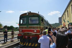 Un fine settimana all’insegna del treno storico quello appena trascorso a Morcone, dove il 14 luglio scorso, in una stazione gremita, la comunità morconese ha salutato con entusiasmo l’arrivo del “Sannio Express”, il treno storico-turistico promosso da Fondazione Fs e finanziato dalla Regione Campania. Un progetto che vede protagonista la CNA di Benevento con il suo brand di valorizzazione del territorio, “Sannio Autentico” e vede il coinvolgimento diretto delle associazioni culturali del territorio. Vecchie locomotive, pezzi da museo per nostalgici che tornano magicamente a vivere. Bambini, ragazzi, giovani e meno giovani hanno accolto il ritorno del treno nella stazione di Morcone, una grande festa a cui hanno preso parte, oltre ai circa 200 passeggeri del treno storico organizzato per visitare i luoghi di Padre Pio, tantissimi cittadini che, con gli occhi colmi di nostalgia, hanno voluto fare un tuffo nel passato e rivivere le emozioni di un tempo. Sullo sfondo della vecchia stazione, alcuni ragazzi morconesi hanno indossato abiti di inizio ‘900, un immagine unica che ha restituito quella che era la Morcone di un tempo, una scena che ha sorpreso e stupito non solo la popolazione ma soprattutto le tante autorità presenti.