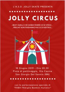 Martedì 18 giugno tutti a San Giorgio Del Sannio presso la pista di pattinaggio in via Cesine. Alle ore 20:30, infatti, l’Asd Jolly Skate presenterà il saggio conclusivo delle sue atlete dal titolo: Jolly Circus. Durante lo spettacolo, atleti ed atlete si lanceranno in esibizioni sia singole che collettive, regalando al pubblico una magica atmosfera circense.