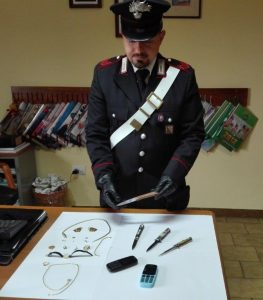 Al fine di appurare compiutamente la provenienza illecita del materiale rinvenuto e procedere alla completa identificazione, i tre stranieri venivano condotti presso gli uffici della stazione di Morcone. Qui, nel corso degli ulteriori accertamenti, un cittadino della provincia di Campobasso li riconosceva, senza ombra di dubbio, quali autori del furto presso la sua abitazione avvenuto la mattina di domenica scorsa. In quella circostanza, infatti, quattro individui, a seguito di effrazione di una finestra, s’introducevano all’interno dell’abitazione dalla quale asportavano monili in oro per un valore complessivo di circa 6000 euro e 300 euro in contanti. Sorpresi dalla vittima, i quattro si davano a precipitosa fuga facendo perdere le loro tracce. Sono tuttora in corso ulteriori indagini tese a riscontrare la provenienza degli oggetti rinvenuti ieri e posti sotto sequestro unitamente all’autovettura e ai quattro coltelli.