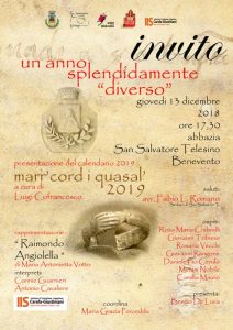 Giovedì 13 dicembre, ore 17.30, l’Abbazia di San Salvatore Telesino ospiterà ‘un anno splendidamente “diverso”: presentazione del calendario “marr’cord i quasal” 2019 a cura di Luigi Cofrancesco.