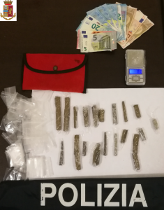 Rinvenuta anche la somma di 325 euro in banconote di vario taglio, ritenute dagli agenti quale provento dell’illecita attività di spaccio di sostanze stupefacenti. Nelle immediate vicinanze dell’abitazione è stato invece trovato un bilancino di precisione digitale con residui di sostanza di colore bianco, risultata essere del tipo cocaina nonché 186 bustine vuote di cellophane, del tipo utilizzato per il confezionamento di marijuana o cocaina. Tutto il materiale rinvenuto nel corso della perquisizione è stato quindi sottoposto a sequestro penale.