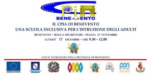 Il Centro Permanente per l’Istruzione degli Adulti di Benevento presenta il Convegno “Una scuola inclusiva per l’istruzione degli adulti”, lunedì 17 dicembre ore 9,30, presso la sala consiliare della Rocca dei Rettori, Piazza IV novembre.